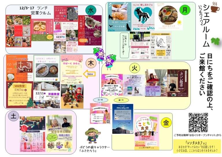 12月のシェアルームカレンダーとイベント予定です。 参加をお待ちしています。