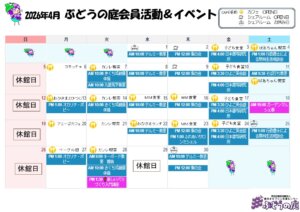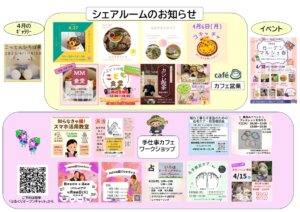 4月のシェアルームカレンダーと会員活動&イベント予定です。